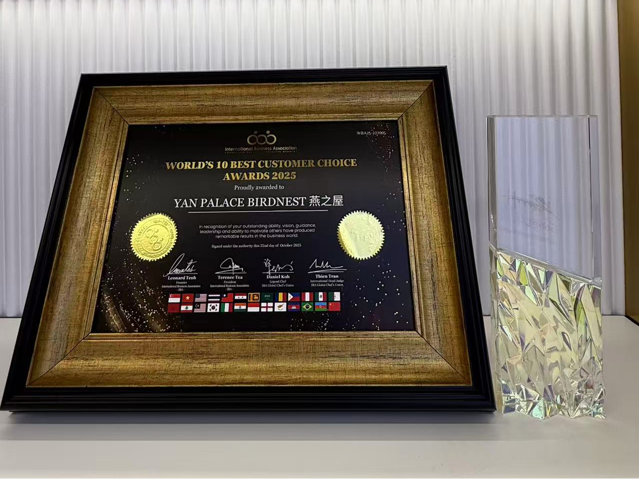 近日,燕之屋憑借其卓越的產品品質和以客戶為核心的服務理念,斬獲2025年國際商業協會(IBA)大獎——全球十大最佳客戶選擇獎。這一國際殊榮不僅是對燕之屋品牌實力的認可,更是燕之屋不斷開拓全球化市場的重要成果。